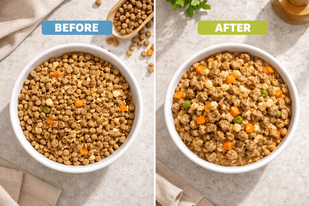 Dehydrated Honest Kitchen meals are simple to prepare, but they do take a little planning. You add warm water, stir, and wait a few minutes for the food to soften. It’s not difficult, but it isn’t as fast as scooping kibble either.